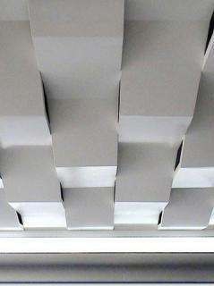 - 铝扣板天花 铝扣板天花系列分为暗架式和明架式。金属建材铝扣板天花系统由装饰面板、主副龙骨以及相关配件共同构成。装饰面板为方形块状,采用铝合金制造。铝扣板天花厚度分为0.5 mm、0.6 mm、